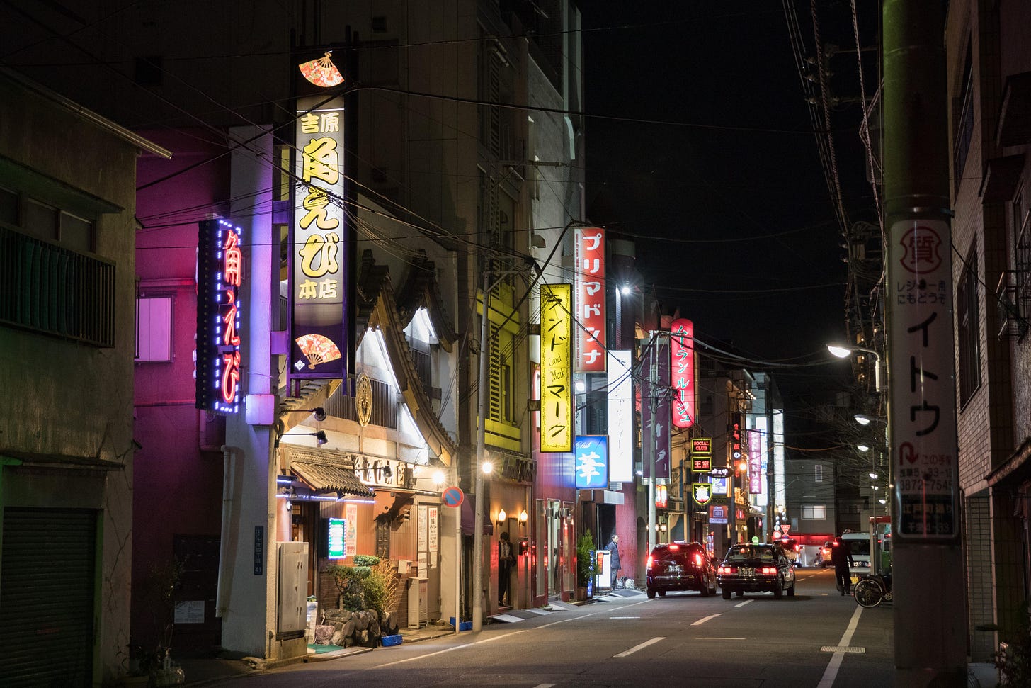 I went with this guy who (barely) reads my blog. He’s 37 and apparently has enough money to do what he wants when he wants where he wants for the rest of his life but I can never seem to ask these people to share. He took me out to dinner in Shinjuku and then we took an Uber across the city up to Yoshiwara, the fabled red light district I read about in a Vice article last week.
