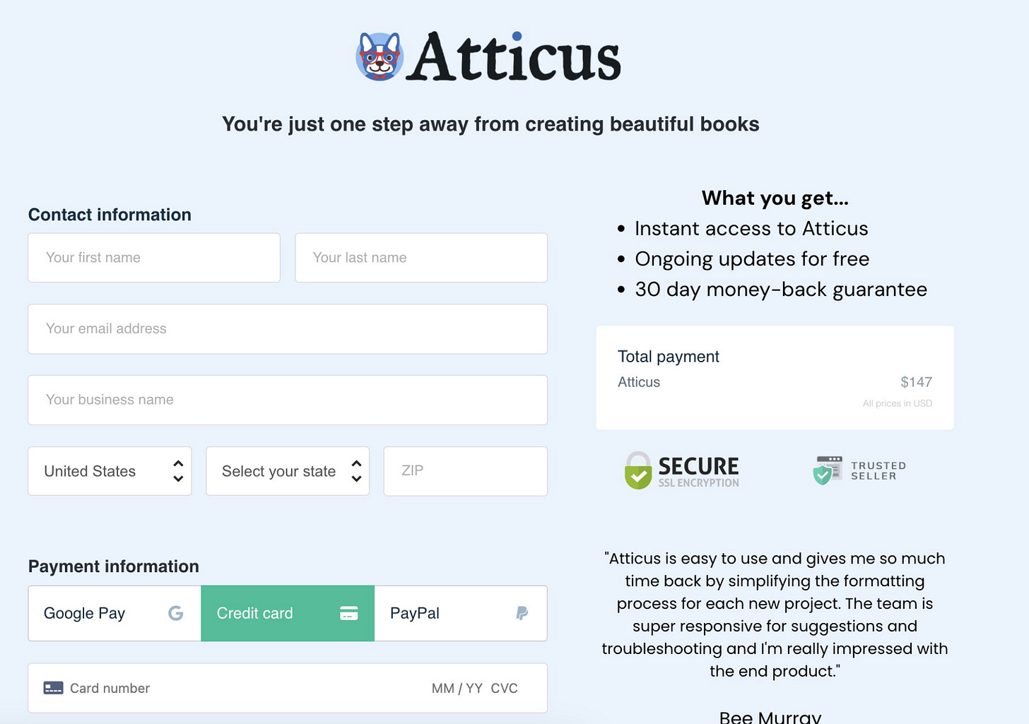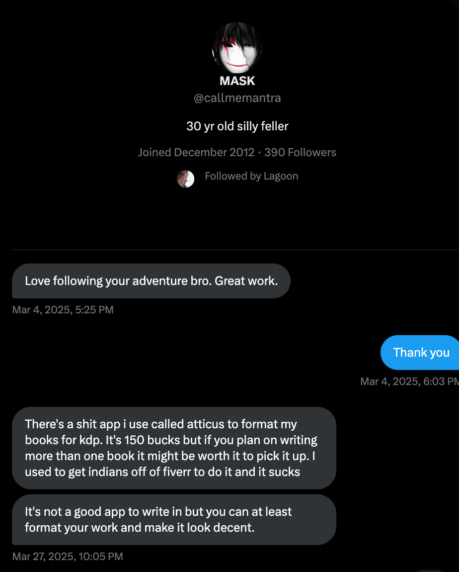 I’m going to get my $150 back from Atticus because I’m a bad person, but I will give them a shining endorsement and say that their formatting software really did help make the book look clean and professional and, in the end, save me a lot of time.
