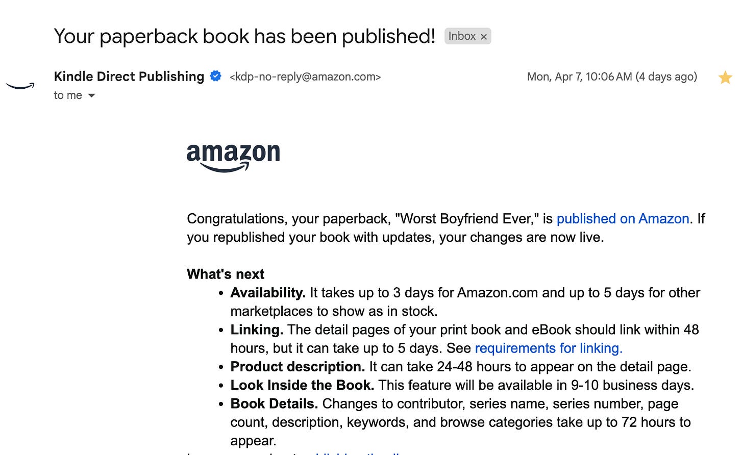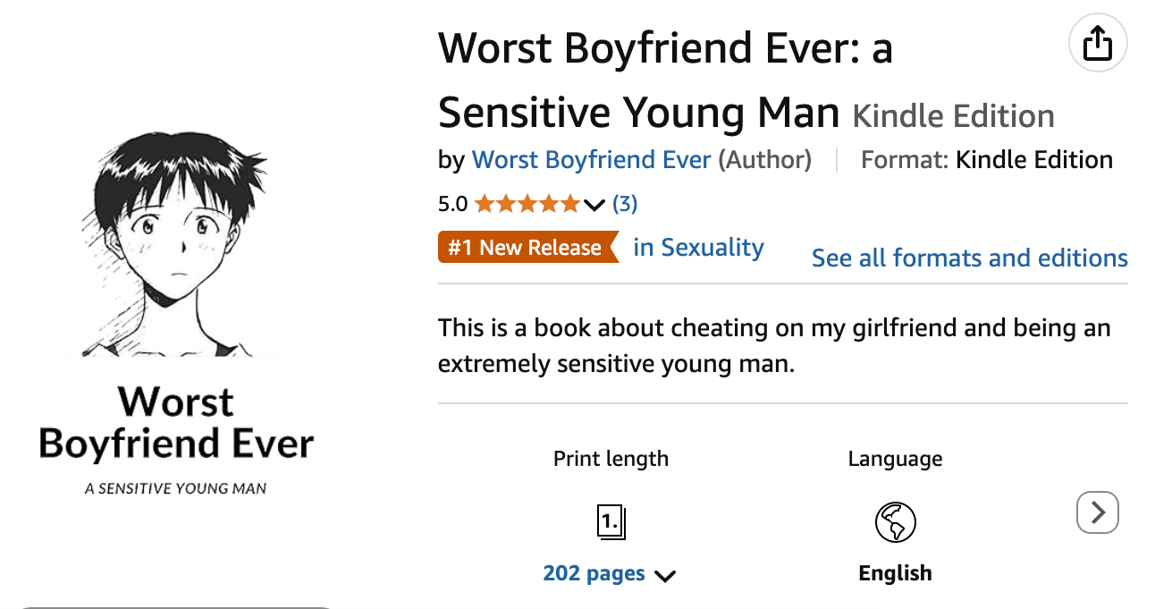 TA-DA!!: Your paperback novel about cheating on your girlfriend is magically available for purchase on Amazon.com!