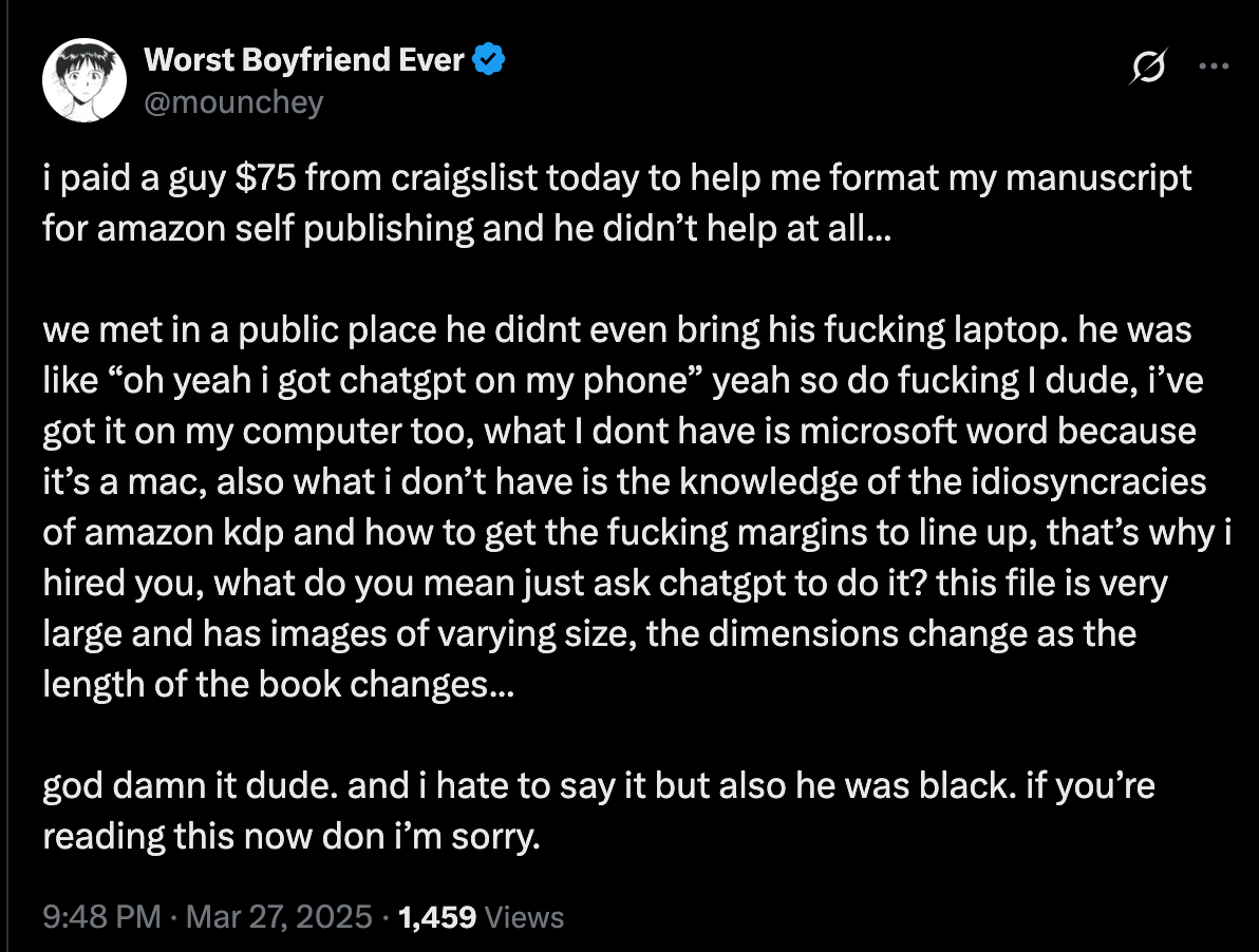 Also, don’t forget, they are PRINTING and SHIPPING every book for me, automatically, with ZERO editorial oversight. That shit is priceless for a visionary homeless retard like me…