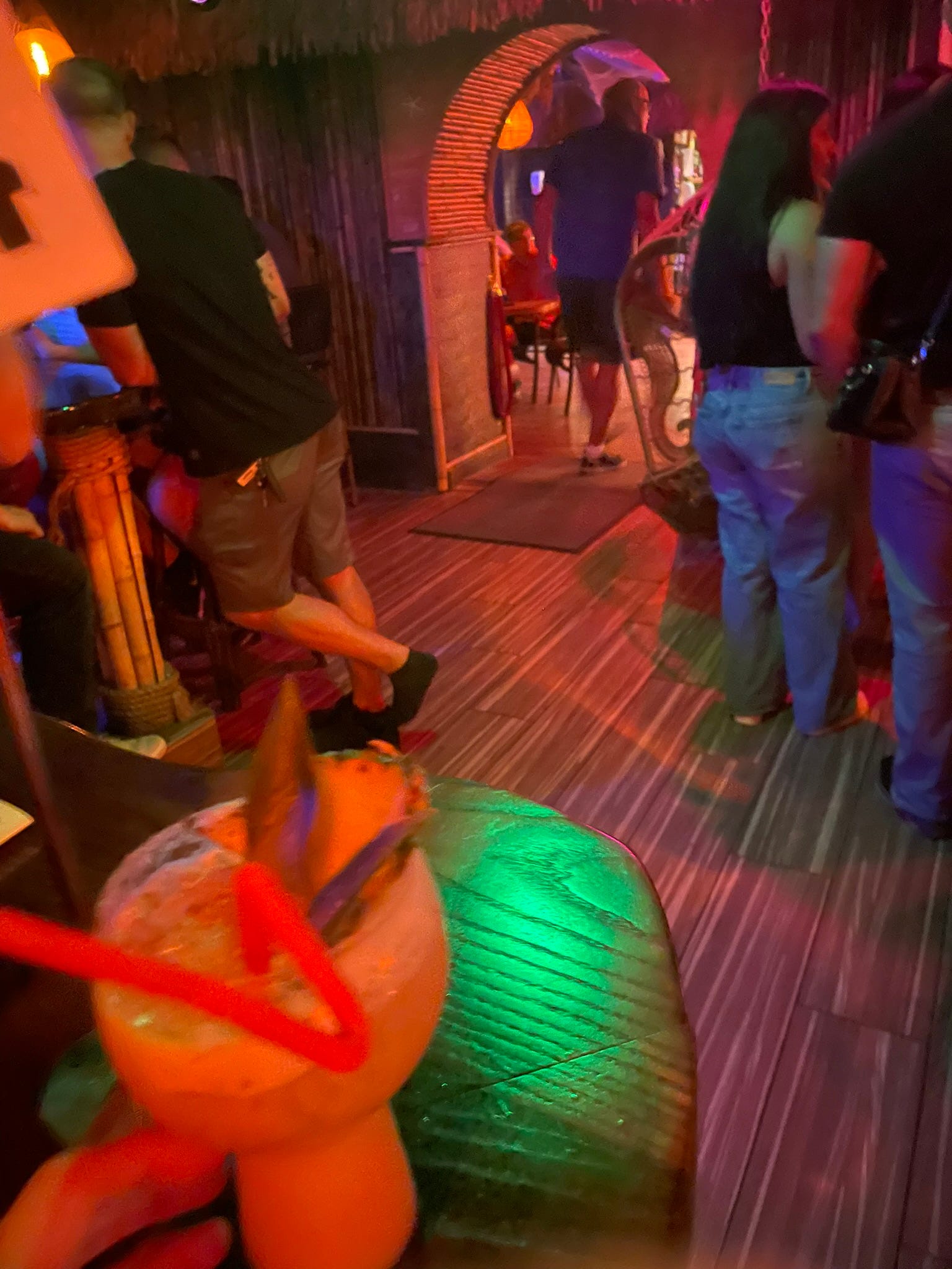 i liked bc cruels angels thesis playing on blast in what looks like..a tiki styled bar?
