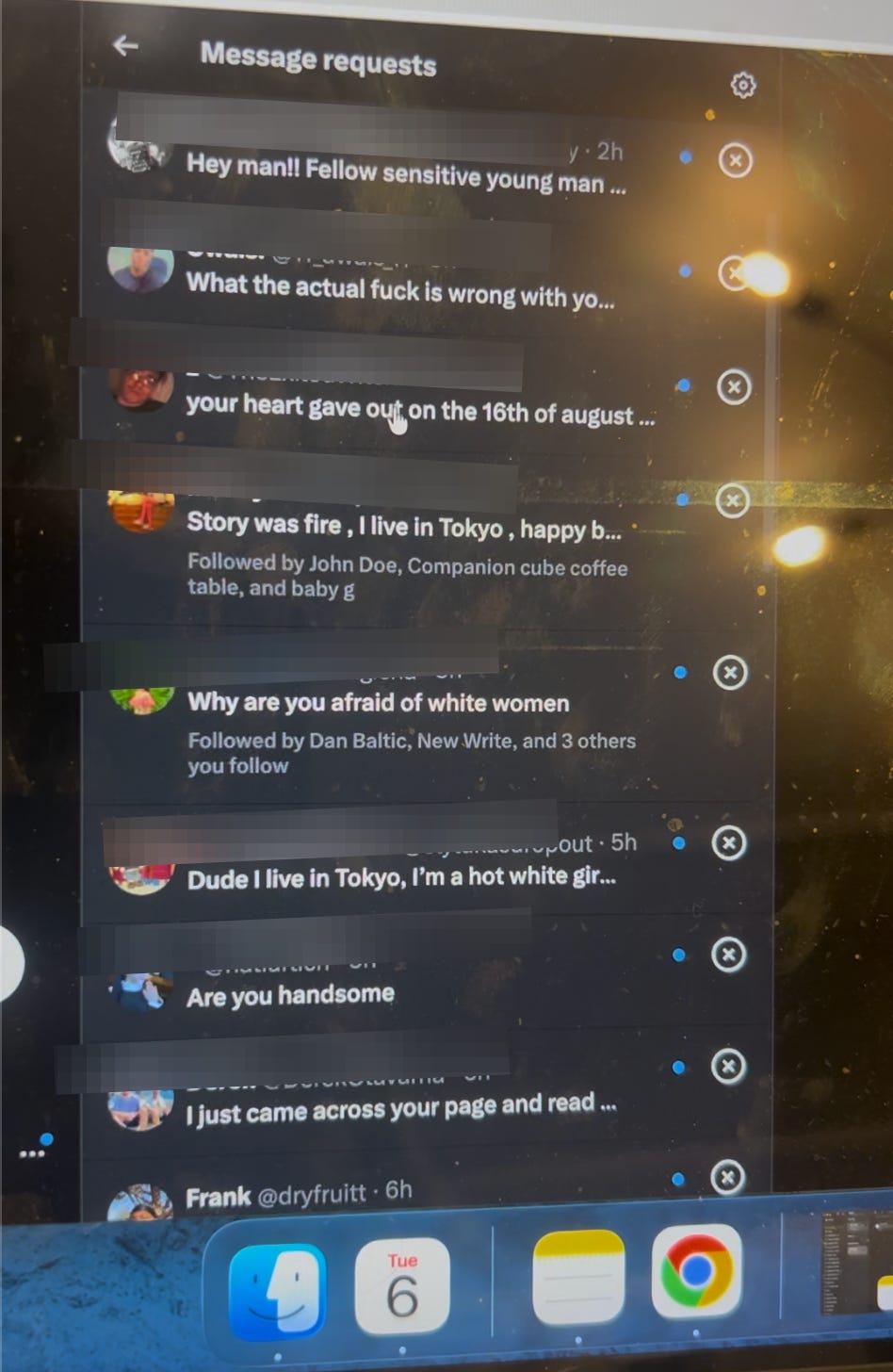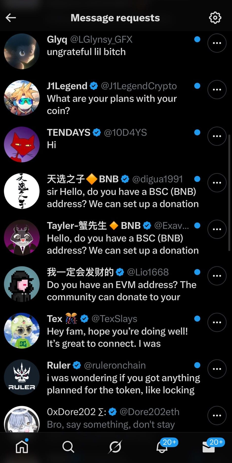 Even more DMs. I can’t close them I don’t know why. Now way-more-than-half of them say Kill yourself. Crypto retards who didn’t know who I was 40 minutes ago and read the words “I am homeless” in my bio bought the coin and now expect me to give them a fucking refund like it’s Walmart.